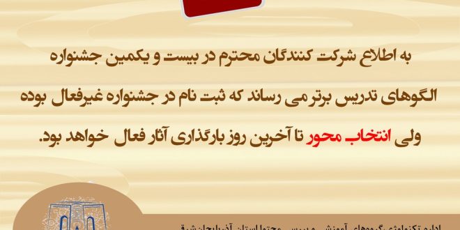ادامه مطلب »وبینار” طرح درس نویسی بر محور برنامه درس ملی و طراحی سوال استاندارد “
